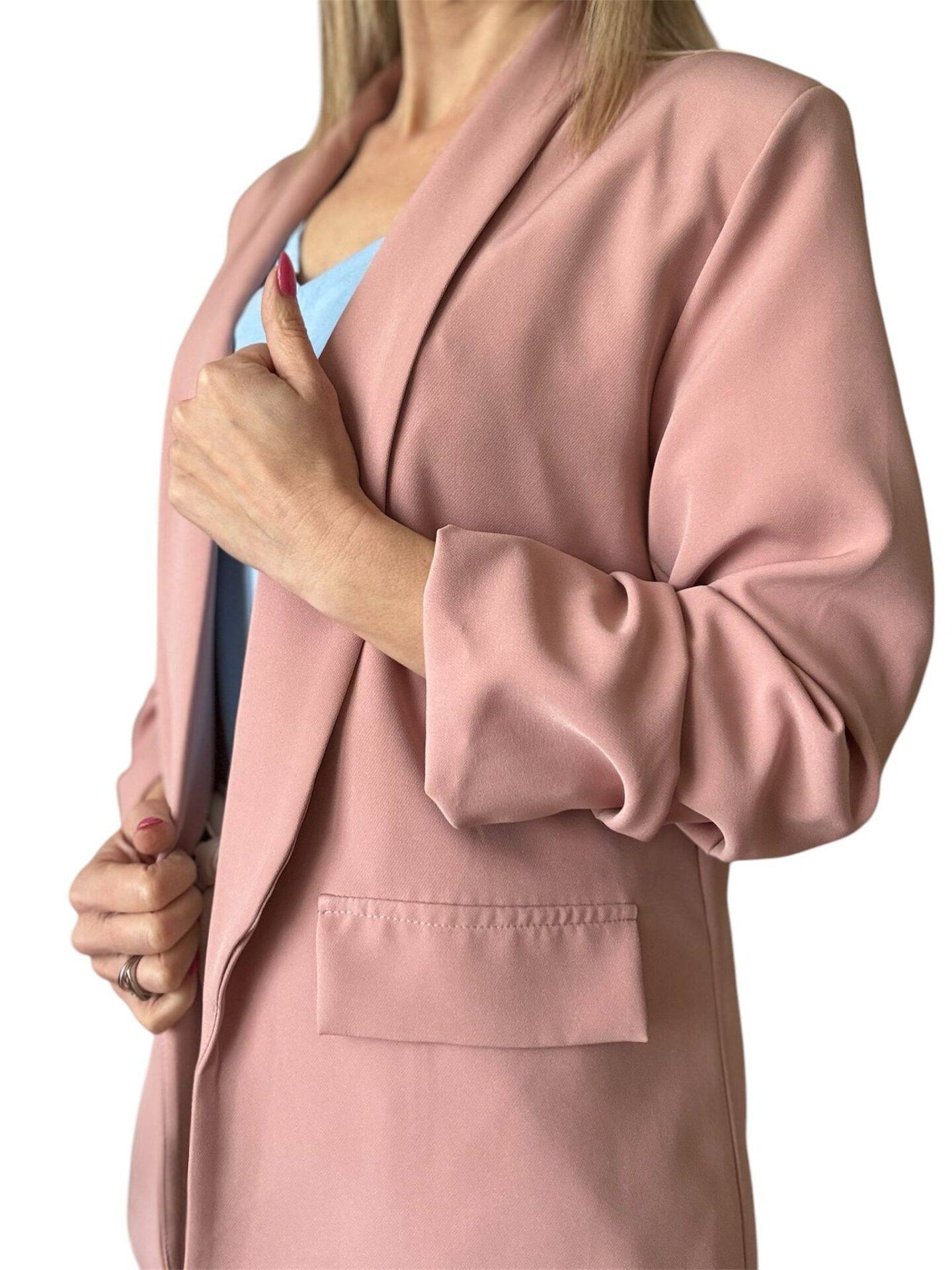 Blazer con tasche finte, aperto davanti, arricciatura sulle maniche.