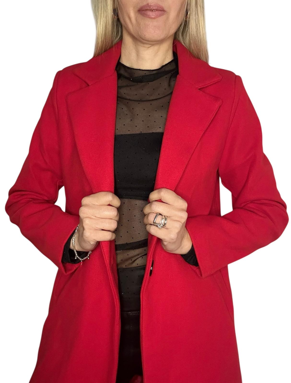 Cappottino al ginocchio, taglio elegante, con scollo a V e un solo bottone frontale per un tocco minimal, ma super chic. il capo perfetto per sentirti sicura e raffinata in ogni occasione.