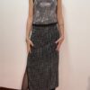 Gonna lunga alle caviglie, elastico in vita, spacco laterale e borchie.