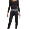 Jeans neri con strass brillanti, vita alta e vestibilità skinny (consiglio 1 taglia in più).
