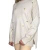 Maglia lunga, maniche lunghe, scollo tondo. Cuori oro ricamati. Spacchetti laterali.
