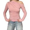 Maglia a manica lunga, pieghe sullo scollo davanti, monospalla.